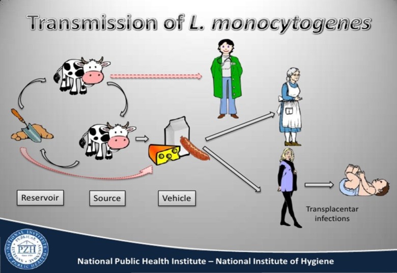 Основной путь заражения человека листерией — пищевой, при употреблении инфицированных продуктов: