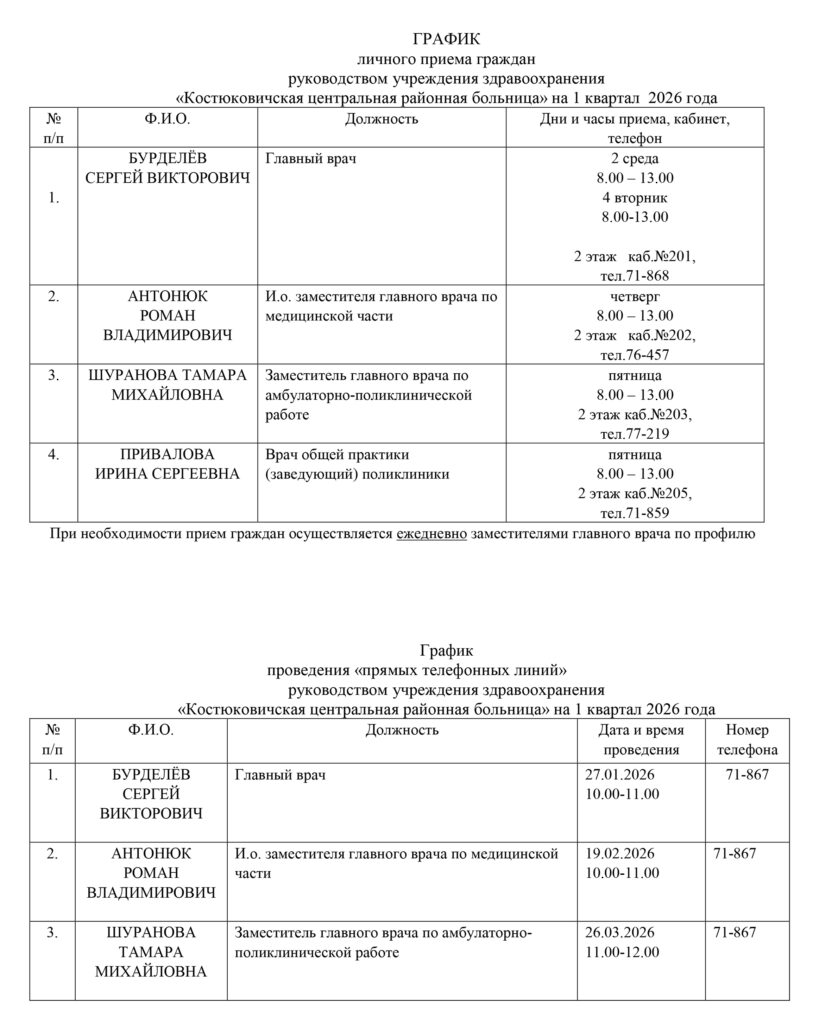 Графики проведения личного приёма и прямых телефонных линий